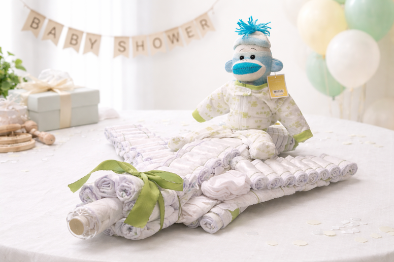 Need a simple and stress-free baby shower diaper cake idea? This basic diaper cake tutorial walks you through exactly how to make an easy diaper cake step by step, using simple supplies and minimal time. Perfect for beginner crafters and first-time baby shower hosts, this DIY diaper cake recipe can be decorated to match any baby shower theme, color scheme, or gender. Whether you’re creating a diaper cake centerpiece, a practical baby shower gift, or a display for a gift table, this easy diaper cake is a fast, affordable, and crowd-pleasing option.