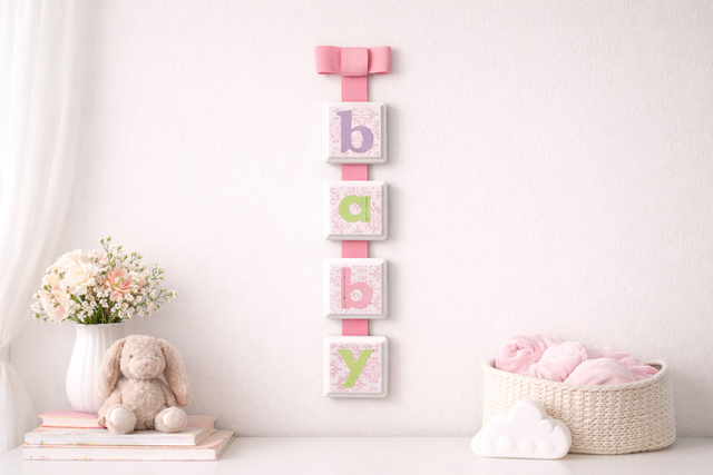 This DIY wood block vertical banner is a baby shower decoration that doubles as a meaningful keepsake gift for the mom-to-be. Created using stacked wooden blocks, this handmade baby shower decor piece can be customized to match any baby shower theme, color palette, or nursery style. Designed to look beautiful during the shower and transition seamlessly into nursery or home decor afterward, this project is perfect for anyone searching for baby shower decorations that aren’t disposable. A great option for hosts who want baby shower decor ideas that feel thoughtful,