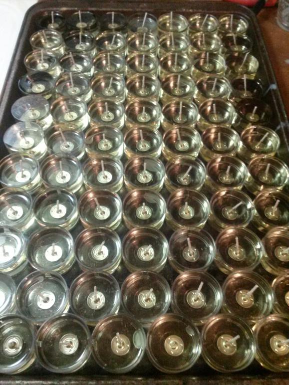 When it comes to wax, I buy Natural Soy Wax in 10 pound bags on Amazon.com, and go through about 20-30 pounds a year. I enjoy burning candles in my home and they always make great gifts, especially when you just need something small and thoughtful. Each pound of wax will yield about 20 tealight candles.