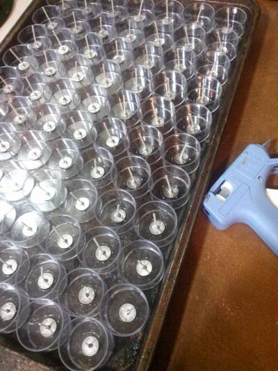 I’ve found that many tins I have come across and wanted to upcycle into candles, are not as tightly sealed as I might think! I use E6000 to form a tighter seal over any seams – just in case! Specific candle making tins should be fine as-is, and won’t need any glue. The tins shown in the title page for this project and the photo above, are 6 oz CandleScience Candle Tins. They worked great and didn’t need any reinforcement! Test any tins you want to use out with water first, and thoroughly dry before using. When it comes to tealight cups, you have two choices – plastic or metal. I purchased the below set of clear plastic 100 tea light candle containers, with wicks for about $20 on Amazon.com and although I gifted half of them away, the other half I kept and have been able to reuse several times over. I also buy the metal tealight cups. I personally think the plastic are prettier, but they don’t do as well in enclosed containers, and can get too hot and warp. They work better in candle holders with a more open style to them. The metal cups can withstand hotter temperatures and are often half the price, but can be difficult to find -- I buy mine on Amazon.com, where a bag of 100 will run you around $10. If you just need the tea light wicks and metal tabs, these are the ones I usually buy when I want to reuse tea light containers.